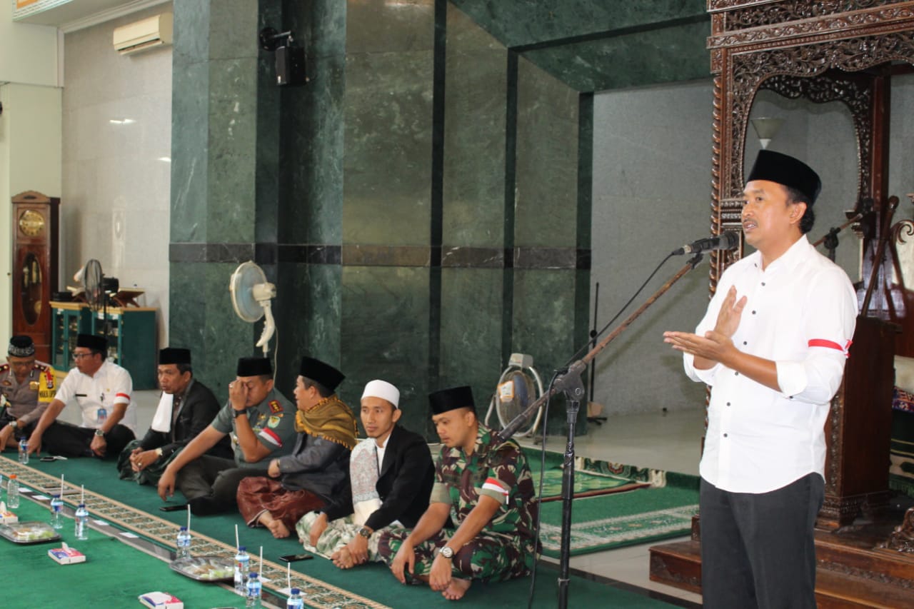 Wakil Bupati Lebak Ade Sumardi ketika memberikan sambutan pada acara doa bersama yang digagas Kodim Lebak di Masdjid Al-Araf Rangkasbitung ( Juaramedia)