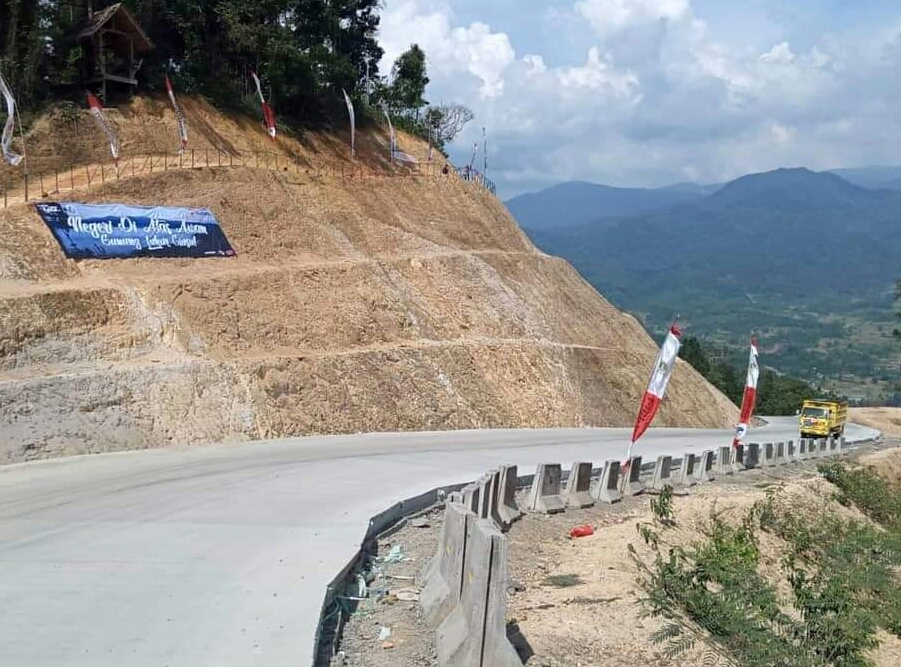 Terlebih, ada beberapa ruas jalan yang membelah gunung, sehingga pada sisi kiri dan kanannya merupakan tebing yang terdiri dari tanah merah dan belum diberi tembok penahan longsor.
