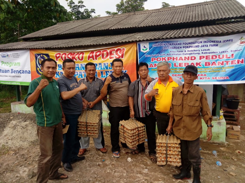 Narto wakil dari pihak PT. Charoen Pokhand saat penyerahaan bantuan 10.000 butir telur ke Posko Apdesi Lebak menerangkan, bahwa kegiatan ini merupakan salah satu program rutin dari PT. Charoen Pokhand dalam rangka membantu sesama untuk meringankan beban para korban bencana banjir bandang dan longsor di Kabupaten Lebak.