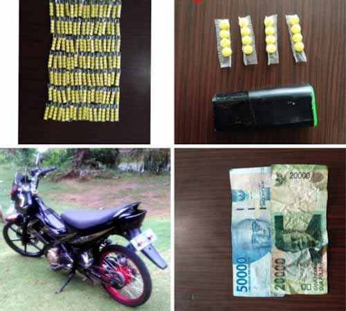 Hamam Wahyudi menjelaskan, dari hasil penangkapan petugas melakukan penggeledahan badan dan ditemukan satu buah kotak warna hitam yang berisi 16 butir obat tablet merk Hexymer yang disimpan di saku celana dan uang hasil penjualan Rp70.000.