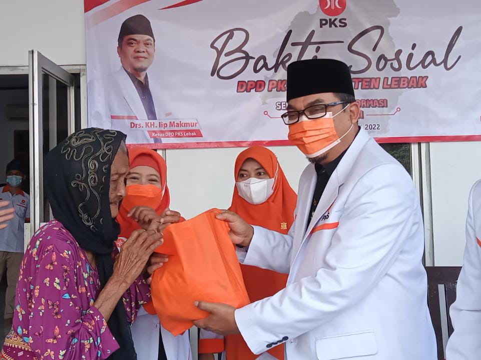 Caption: Ketua DPD PKS Lebak KH Iip Makmur ketika memberikan bingkisan kepada emak emak