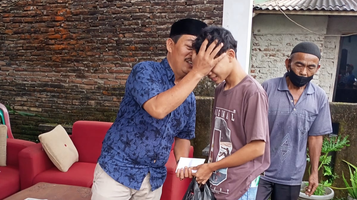 Caption :. Udi Kades Mekarjaya ketika memberikan santunan