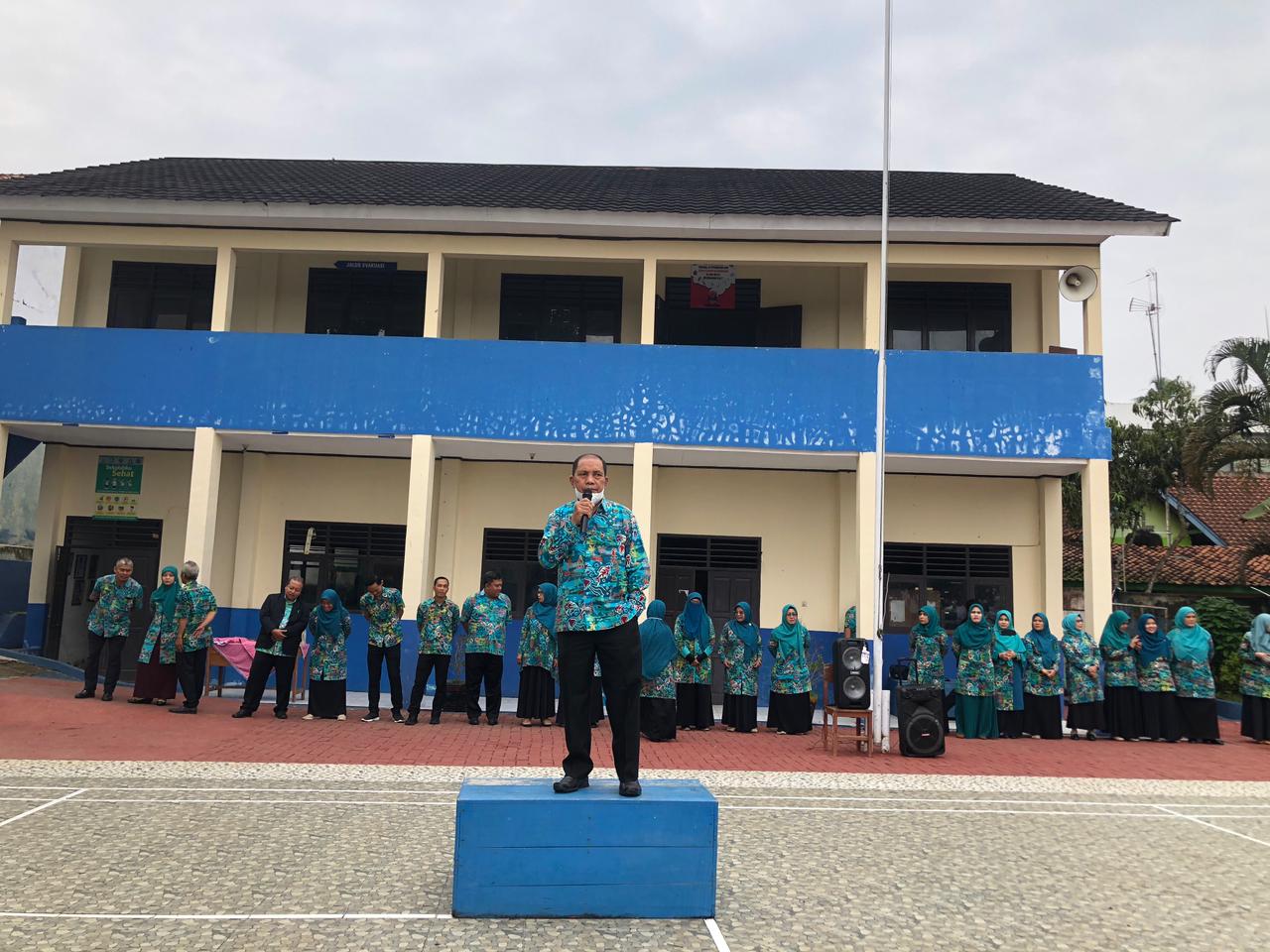 Caption : Kepsek SMPN 1 Rangkasbitung H Sudirman ketika melepas siswa kelas IX