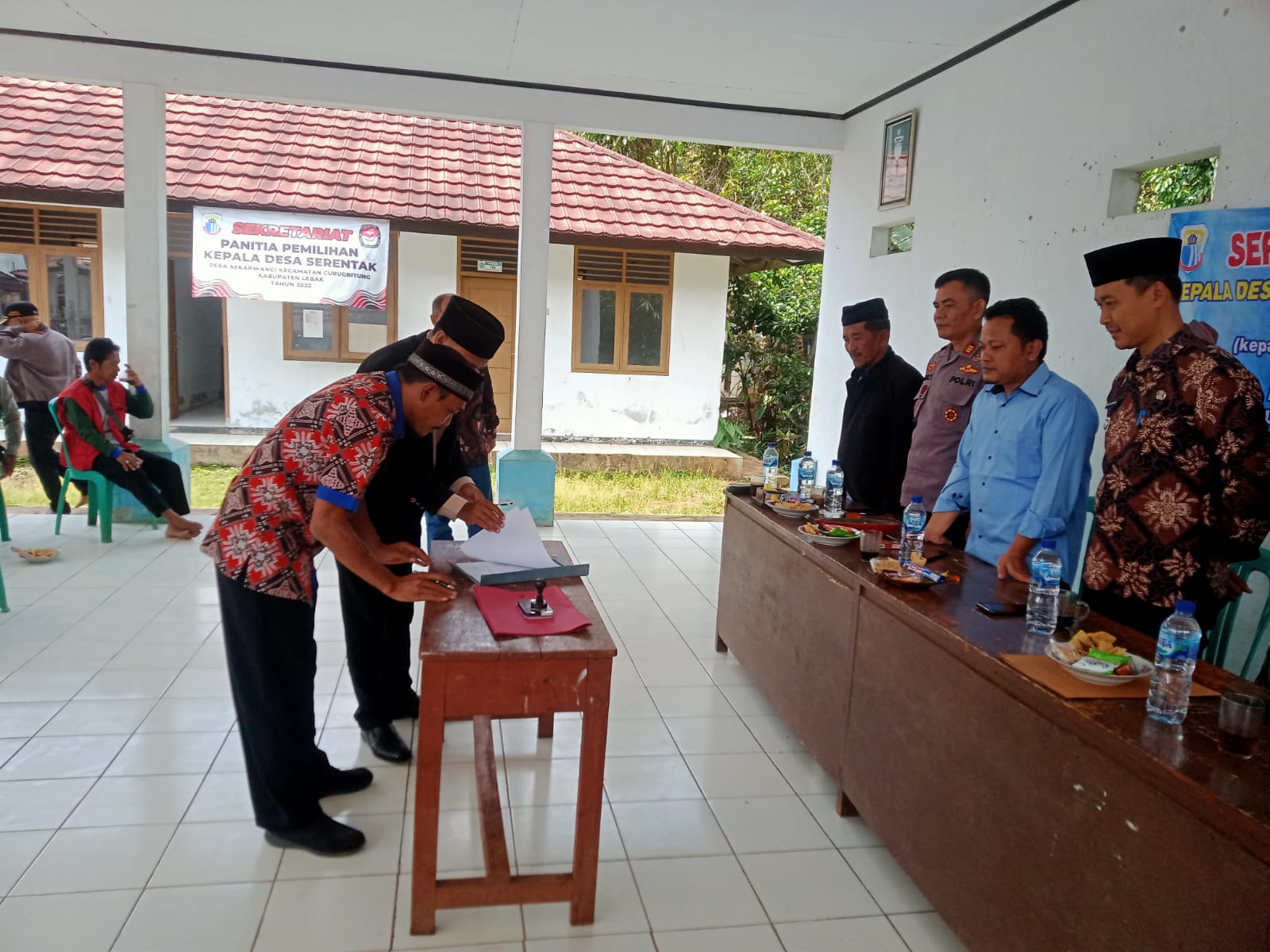 JUARAMEDIA,LEBAK -Jelang Pemilihan Kepala Desa ( ya Pilkades ) serentak tahun 2022. Pemerintah Desa(Pemdes) Sekarwangi, Kecamatan Curugbitung, Kebupaten Lebak, menggelar serah terima jabatan Kepala Desa lama Asep Surisna kepada Jamaludin Malik sebagai Pelaksana Teknis(PLT) yang kini menjabat sebagai sekertaris desa (Sekdes) desa setempat.