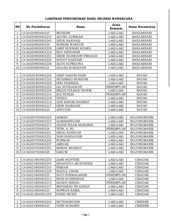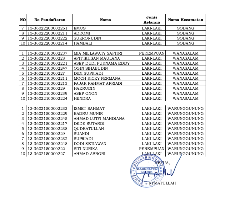 Pengumuman Hasil Test Wawancara Calon Anggota PPK KPU Lebak Pada Pemilu 2024