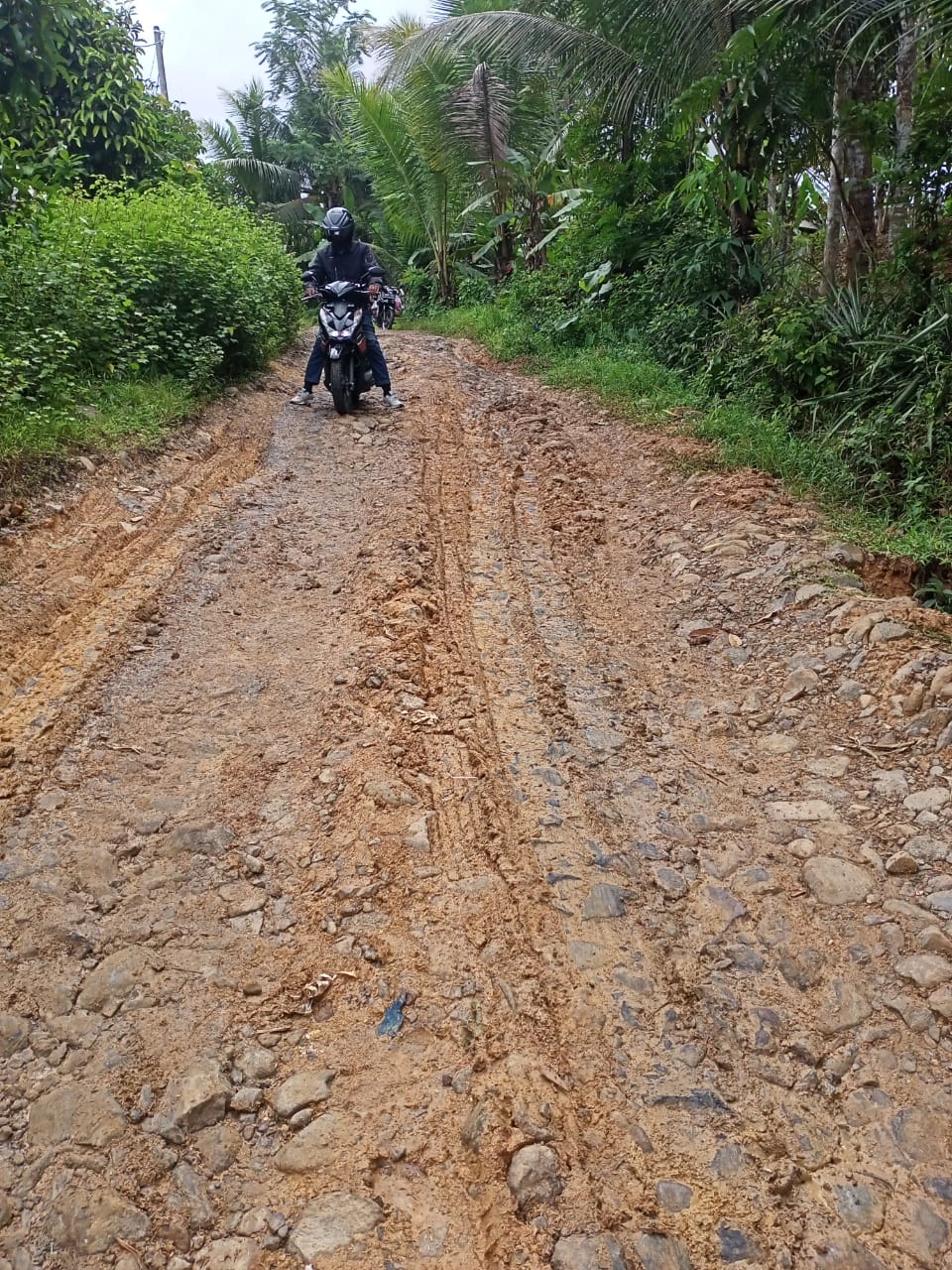 Semenjak di jabat kepala desa yang baru jalan tersebut tidak pernah di perhatikan apalagi dibangun,diminta batu saja untuk perbaikan jalan untuk di kerjakan oleh masyarakat tidak di dengar,kalau masyarakat kerjabakti sudah selesai baru datang.