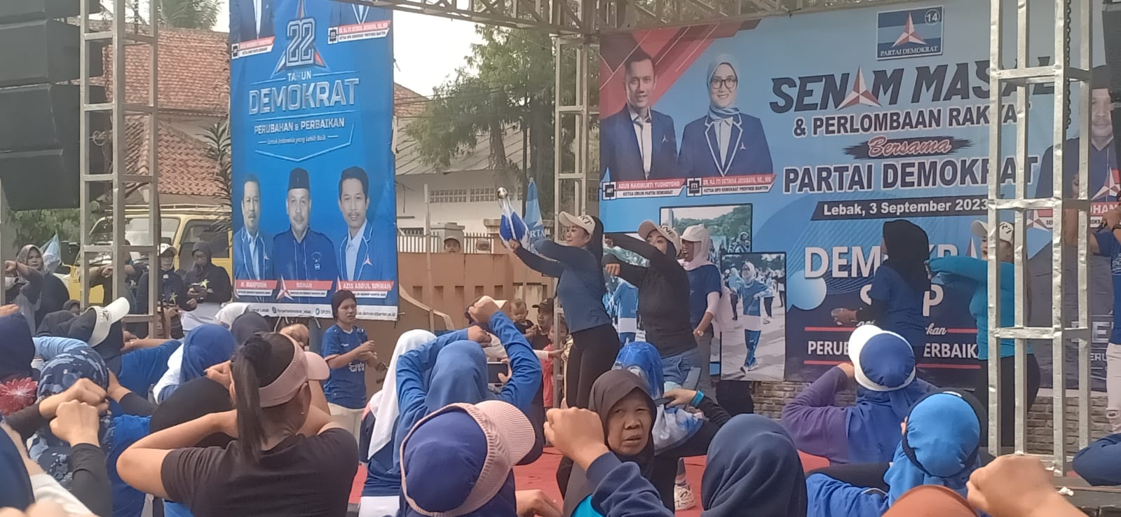 Ternyata, kedatangan ribuan warga Lebak ke kantor partai berlambang mercy tersebut,tidak lain untuk meramaikan dan mengikut senam masal yang diselenggarakan, panitia penyelenggara HUT ke 22 Partai Demokrat.