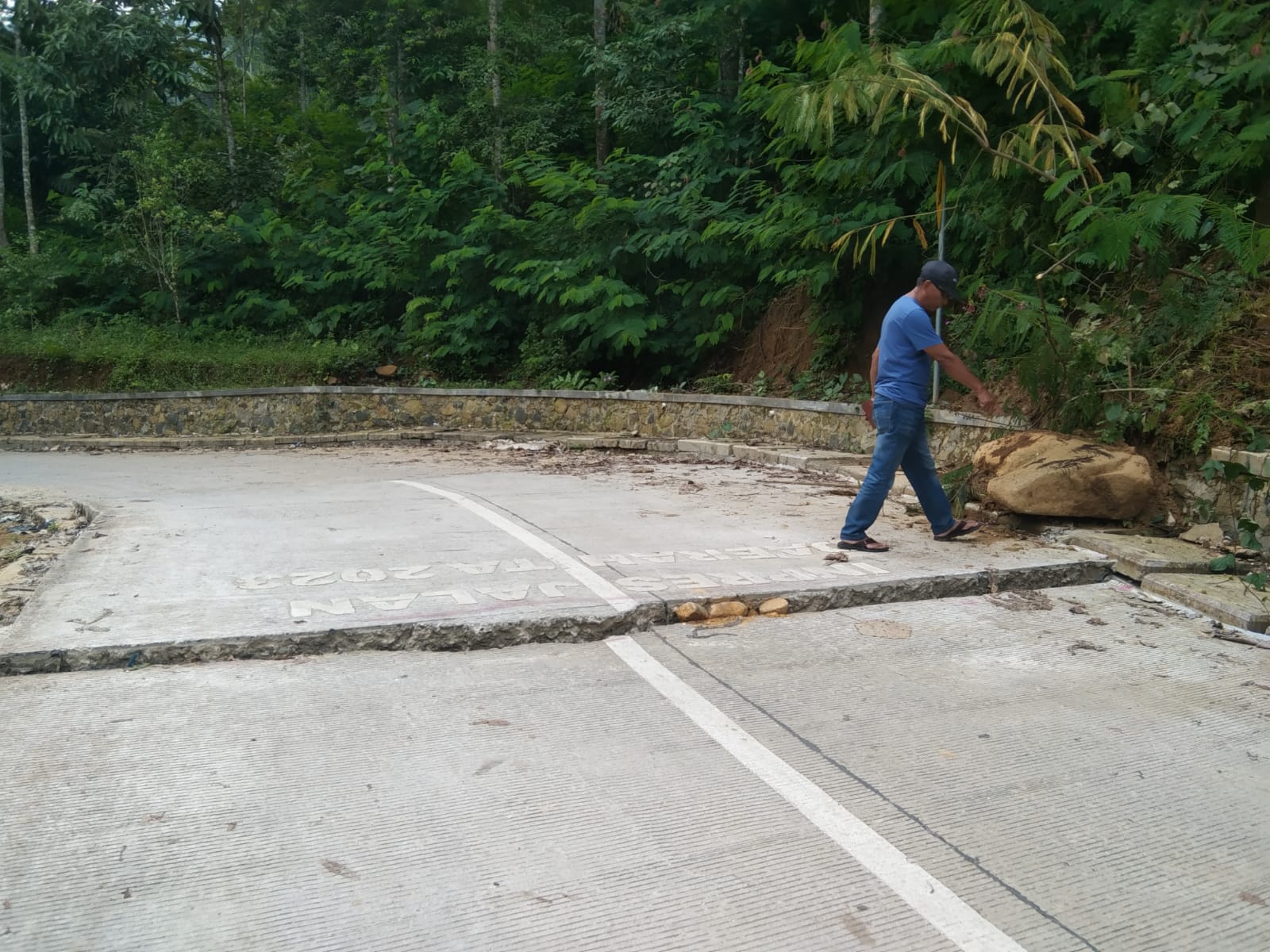 Namun, kondisinya saat ini sejumlah titik telah kembali rusak. Diantaranya, pada bagian beton jalan, dan tembok penahan tebing (TPT) sudah ambrol.