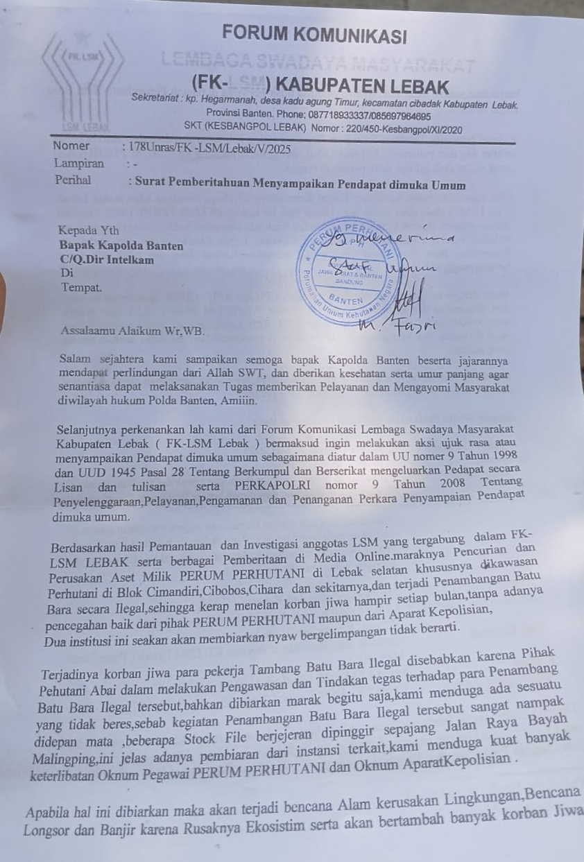 Oplus_131072Caption : Surat Pemberitahuan Rencana Aksi FK-LSM Lebak