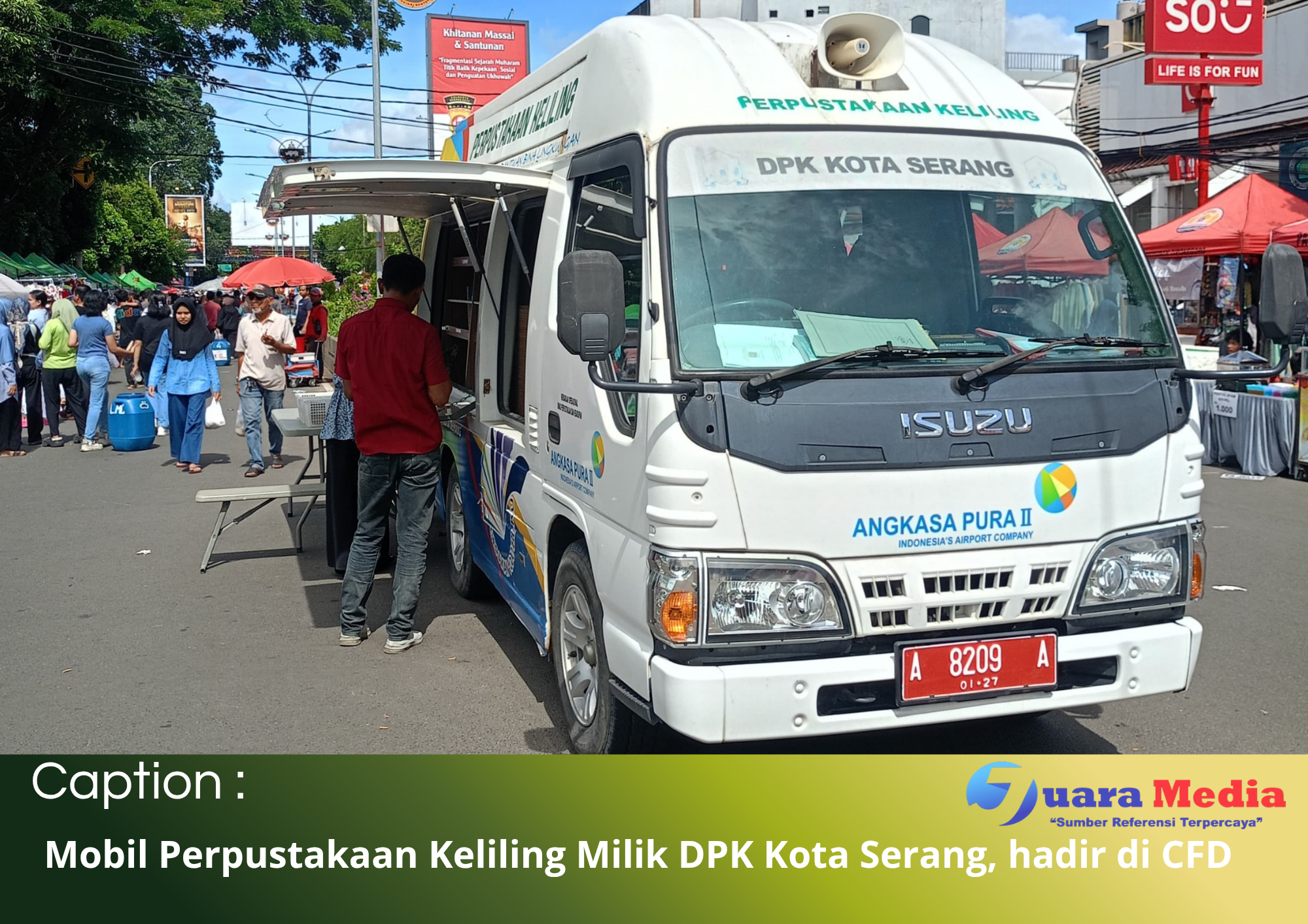 JUARAMEDIA, SERANG – Mobil perpustakaan keliling milik Dinas Perpustakaan dan Kearsipan (DPK) Kota Serang menjadi pusat perhatian dalam gelaran Car Free Day (CFD) di Jalan Ahmad Yani, Minggu (16/11/2025). Di tengah riuhnya pedagang UMKM dan arus warga yang berolahraga, perpustakaan keliling justru mencuri perhatian karena ramai didatangi pengunjung yang ingin membaca hingga meminjam buku.