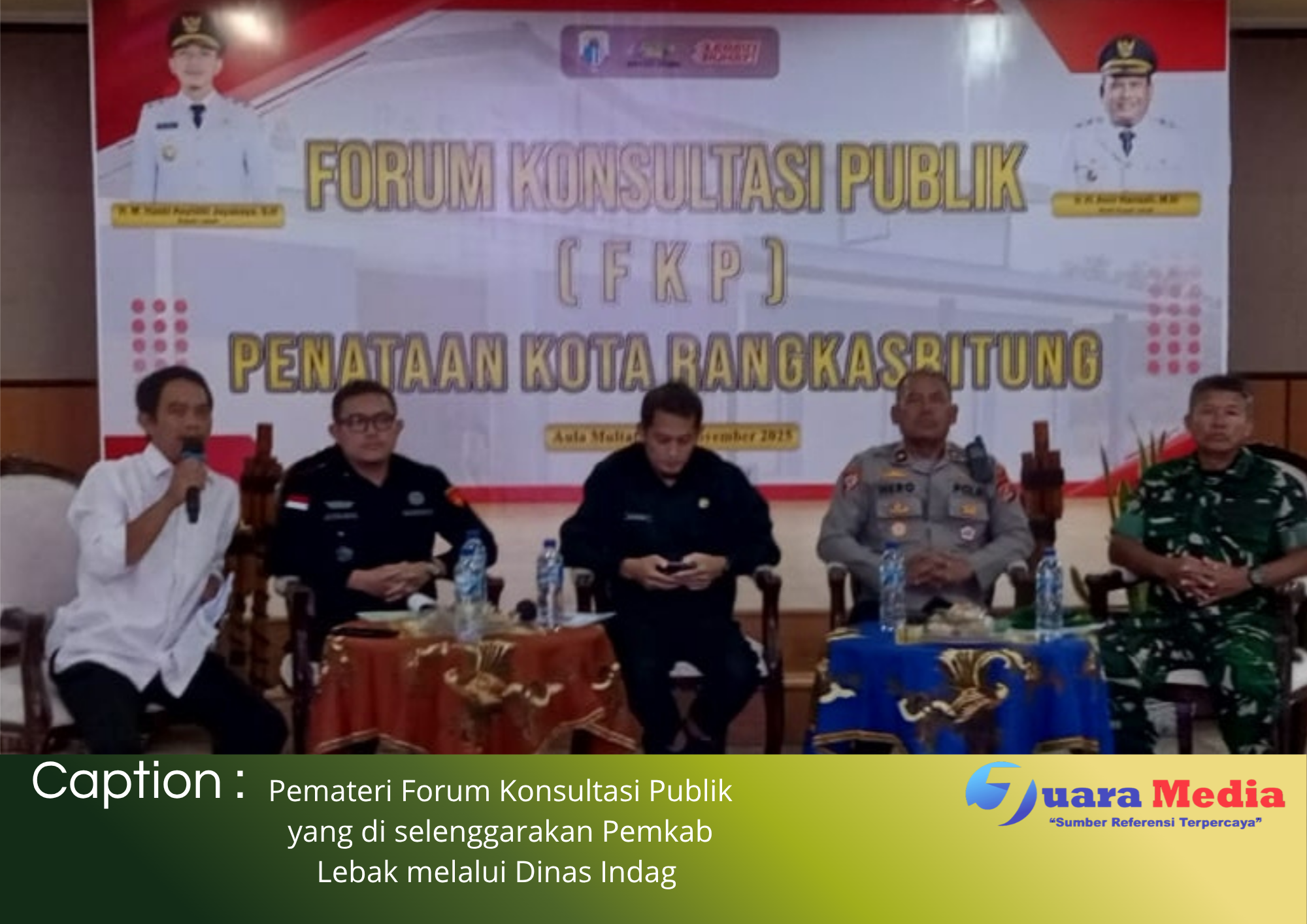 Forum komunikasi publik ini turut menghadirkan sejumlah narasumber dari unsur hukum dan keamanan, seperti Kasi Pidsus Kejaksaan Negeri Lebak Irfano, Kabag Ops Polres Lebak, dan Pasi Ops Kodim 0603 Lebak, yang membahas aspek hukum serta sinergi keamanan dalam proses penataan.