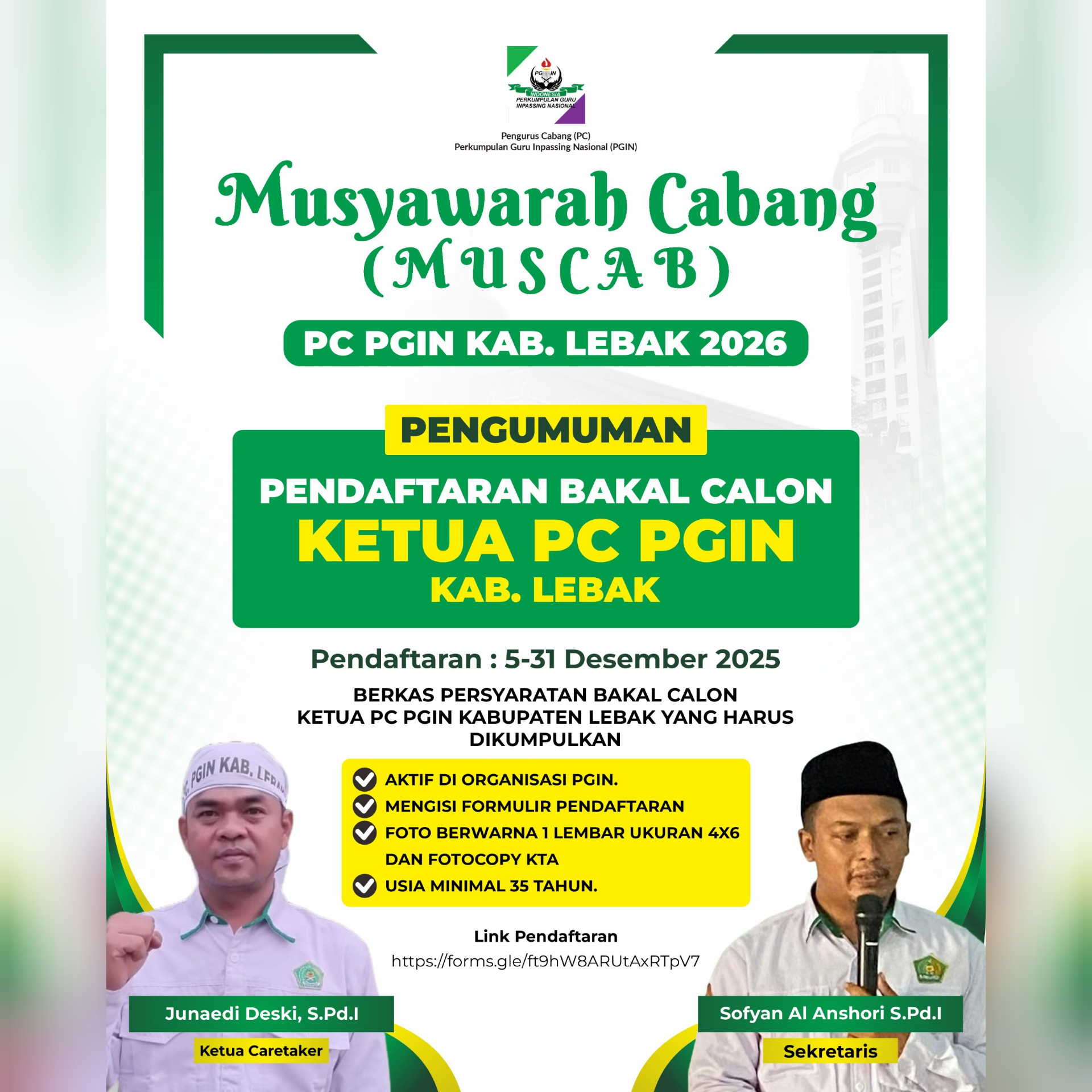 Syarat Calon Ketua PGIN Lebak 2026–2031