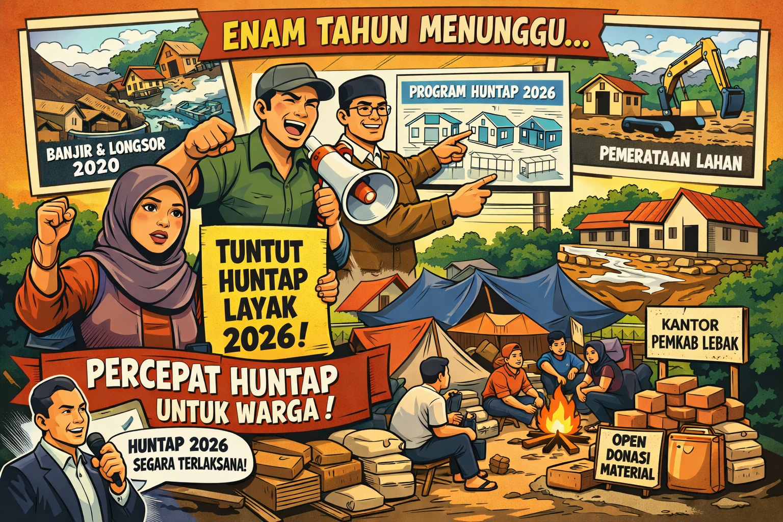 JUARAMEDIA, LEBAK – Penantian panjang korban banjir bandang dan longsor 2020 di Kecamatan Lebak Gedong mulai menemukan titik terang. Pemerintah Kabupaten (Pemkab) Lebak memastikan pembangunan hunian tetap (huntap) untuk sekitar 300 kepala keluarga akan mulai dilaksanakan pada 2026 melalui program pemerintah pusat.