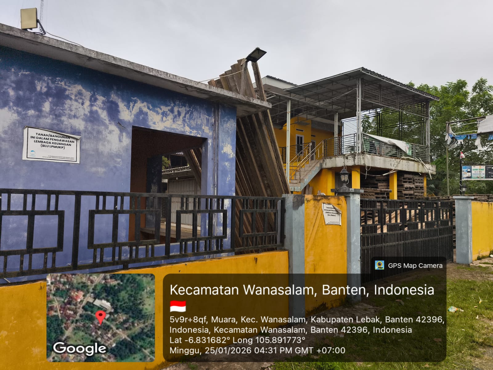Caption : Kantor Koperasi Putra Muara Serba Usaha Wanasalam, di pasangin Tulisan Pengawasan dari LPMUKP)