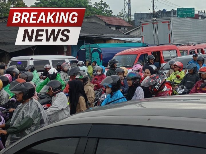 Petugas Polsek Cikande, dibantu Laskar Serikat SPN dan ormas, telah turun ke lokasi untuk mengatur lalu lintas.