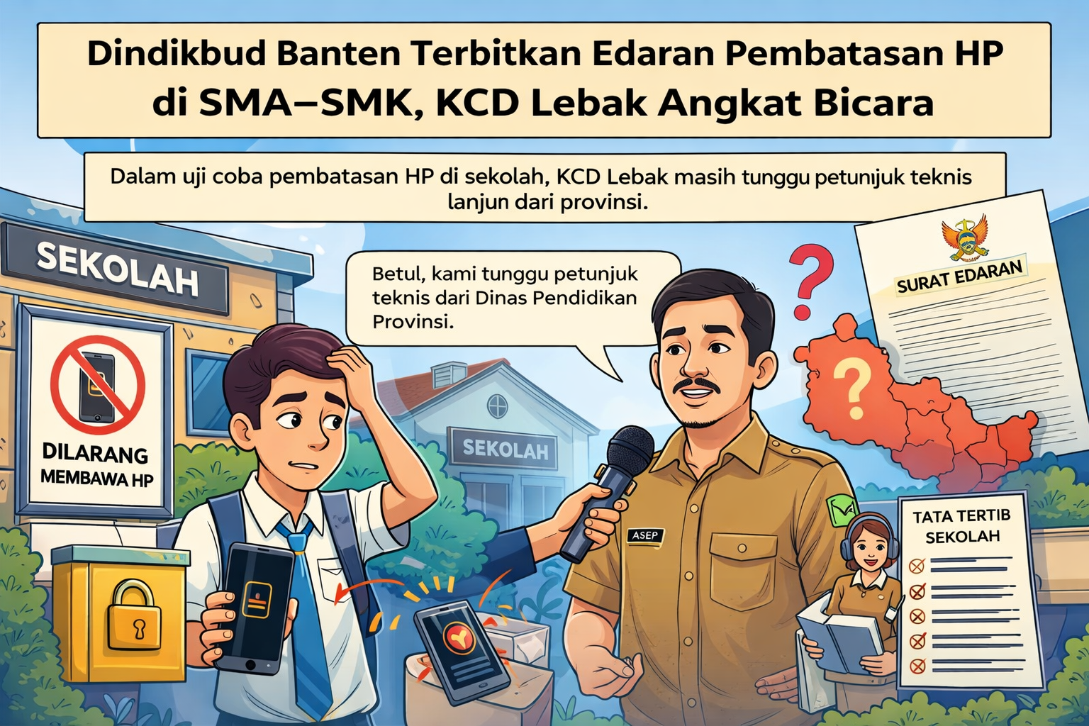 JUARAMEDIA, LEBAK – Dinas Pendidikan dan Kebudayaan (Dindikbud) Provinsi Banten resmi menerbitkan Surat Edaran pembatasan penggunaan telepon seluler (handphone) di lingkungan SMA, SMK, dan SKh negeri maupun swasta se-Banten. Kebijakan ini langsung menuai perhatian publik, khususnya di daerah.