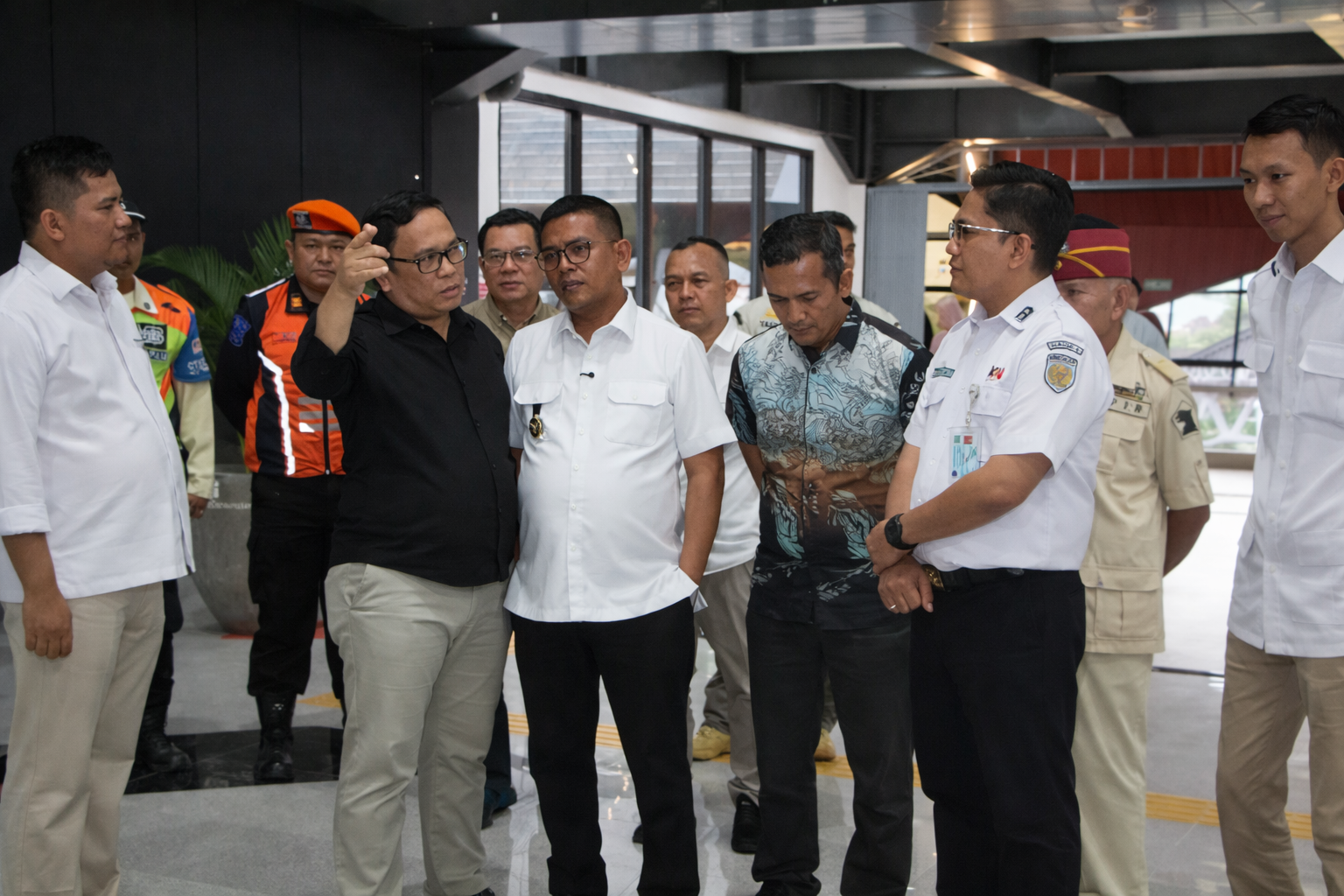 Caption : Gubenur Banten Andra Soni didampingi Wakil Bupati Lebak Amir Hamzah, Bangbang SP Ketua DPC Gerindra Lebak,Yudi Kepala Stasiun Rangkasbitung ketika meninjau Stasiun Ultamate Rangkasbitung, usai meresmikan Pos Kesehatan Merah Putih di Pasar Rangkasbitung