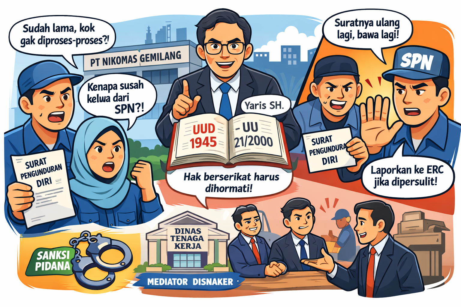 Proses yang dinilai berlarut-larut tanpa kejelasan itu memicu dugaan adanya praktik yang mempersulit hak pekerja untuk keluar dari organisasi, meski hal tersebut telah dijamin dalam peraturan perundang-undangan.